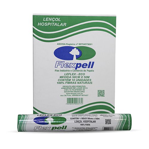 Descrição do Produto Marca: Flexpell Flexpell - Lençol Hospitalar Lençol Hospitalar 100% fibras naturais Disponível em caixa com 10 rolos